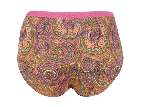 Slip gainant taille haute tout en maille imprimée . Large élastique fantaisie à la taille.
