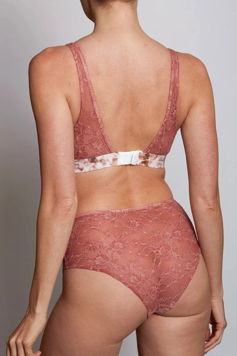 Dentelle française au doux coloris skin nommé « biscuit », à porter avec le triangle cache-coeur assorti.