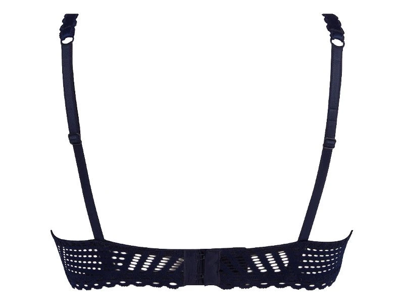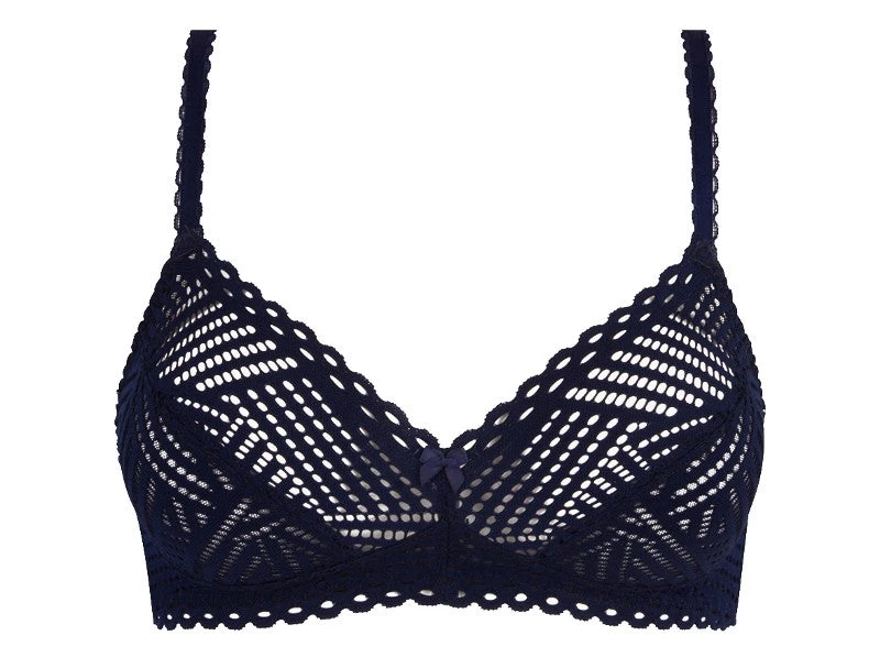 Soutien-gorge sans rmature bleu marine avec dentelle plate ajourée, ligne Tressage graphic de la marque de lingerie Antigel de Lise Charmel
