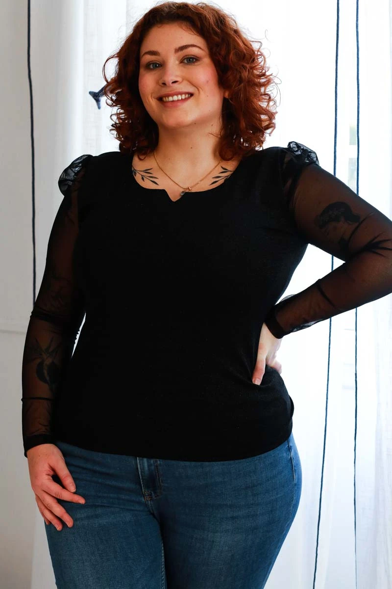 Tricot de Peau fantaisie à manches longues résille Noir de la marque de vêtement italienne Fraly :