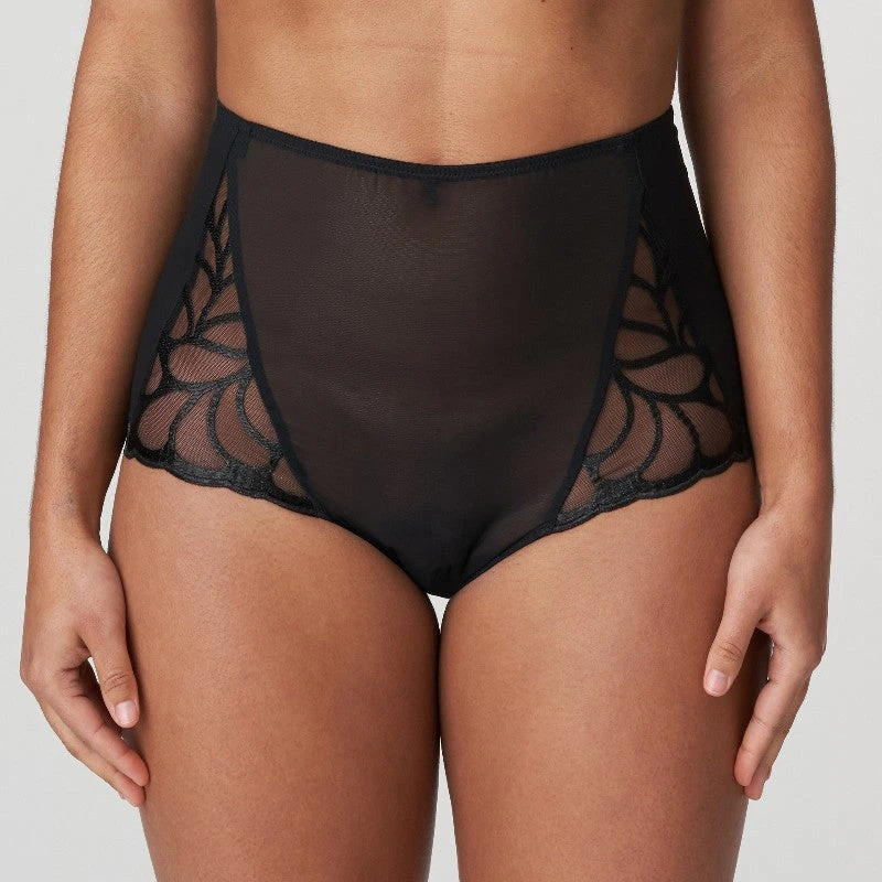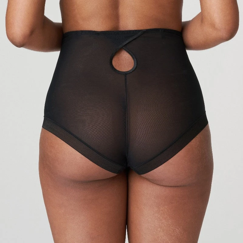 Culotte taille haute affichant une broderie découpée au laser et un look similicuir.